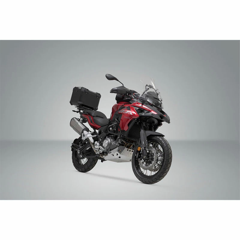 The TRAX ADV top case system consists of a rugged black top case and the matching ADVENTURE-RACK for the Benelli TRK 502 X.
