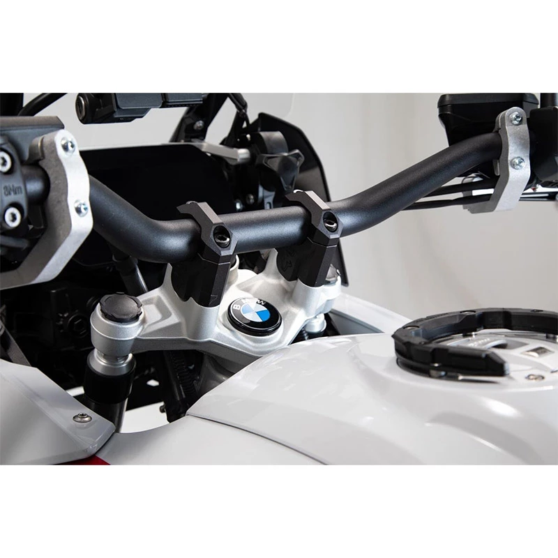 More driving comfort due to a changed seating position: These bar risers, specially adapted to the vehicle, made of sturdy, CNC-milled aluminium increase the handlebar height by 40 mm. Extending the Bowden cables and brake lines is not required.