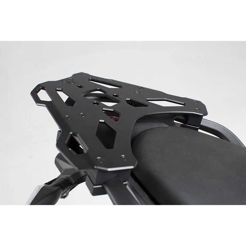 The elegant and versatile ALU-RACK makes a good impression as a luggage rack. This versatile aluminum model, in combination with a corresponding adapter plate, offers a secure seal for top cases from SW-MOTECH or other manufacturers, as well as Sysbag 30. Simple mounting of the adapter plate on the ALU-RACK takes place only with three quick closures. To stop the topcase on the adapter plate you also need a stable socket, thanks to the QUICK-LOCK quick closing system. The ALU-RACK is also suitable for use with soft luggage, especially in combination with the separately available luggage rack extension.