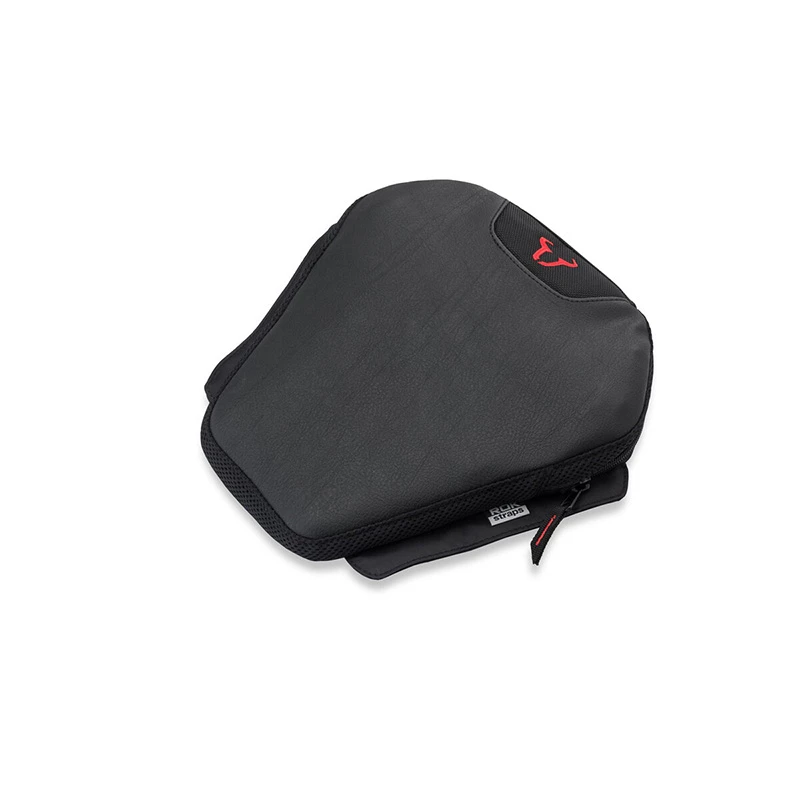 A non-slip underside and retaining straps guarantee secure positioning of the cushion. The bi-elastic, rugged artificial leather surface provides extra sitting comfort. The air volume can be adjusted via an integrated vent for more comfort or a more responsive feel on curvy roads.