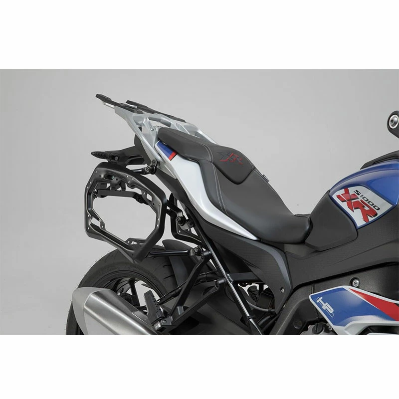 Order, unpack, mount and drive away. The TRAX ION aluminum case system contains everything needed to mount two side cases on your motorcycle: two TRAX ION side cases, two removable SW-MOTECH side carriers, anti-theft protection, matching locks, adapter kit and accessories. The bike-specific carriers and the size of the cases are perfectly matched to the rear shape and exhaust system of the motorcycle.
