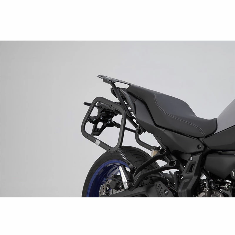 Order, unpack, mount and drive away. The TRAX ION aluminum case system contains everything needed to mount two side cases on your motorcycle: two TRAX ION side cases, two removable SW-MOTECH side carriers, anti-theft protection, matching locks, adapter kit and accessories. The bike-specific carriers and the size of the cases are perfectly matched to the rear shape and exhaust system of the motorcycle.