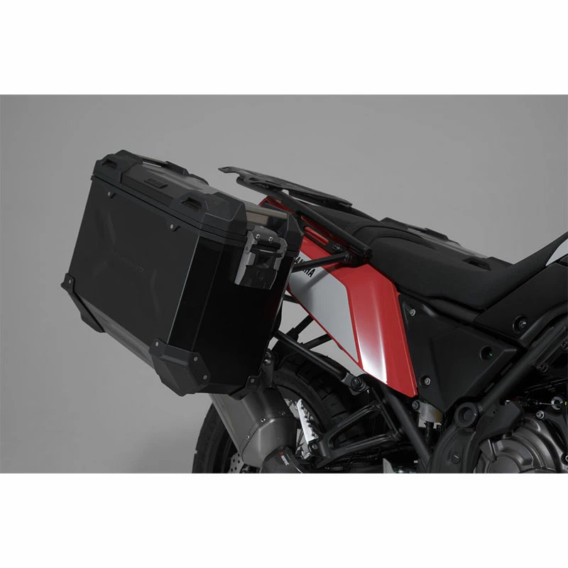 SW-MOTECH has built the black aluminum case system suitable for the Yamaha Ténéré 700 with extremely durable, bike-specific PRO side carriers.