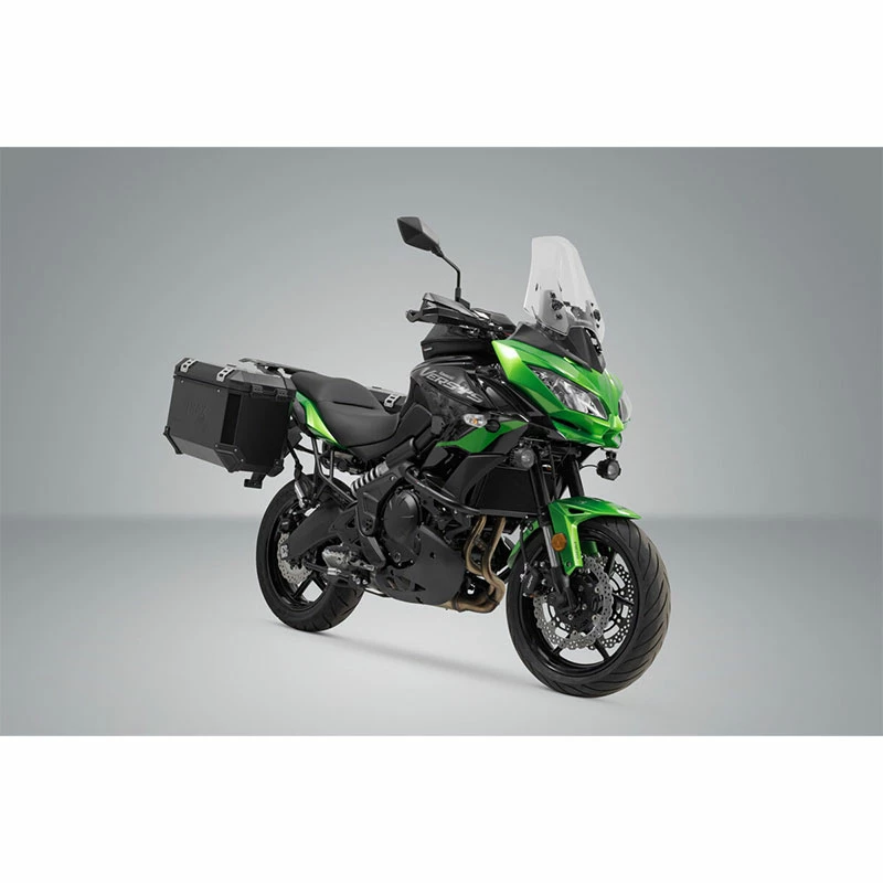 Order, unpack, mount and drive away. The TRAX ION aluminum case system contains everything needed to mount two side cases on your motorcycle: two TRAX ION side cases, two removable SW-MOTECH side carriers, anti-theft protection, matching locks, adapter kit and accessories. The bike-specific carriers and the size of the cases are perfectly matched to the rear shape and exhaust system of the motorcycle.