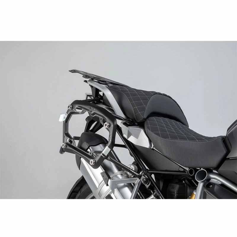 Order, unpack, mount and drive away. The TRAX ION aluminum case system contains everything needed to mount two side cases on your motorcycle: two TRAX ION side cases, two removable SW-MOTECH side carriers, anti-theft protection, matching locks, adapter kit and accessories. The bike-specific carriers and the size of the cases are perfectly matched to the rear shape and exhaust system of the motorcycle.