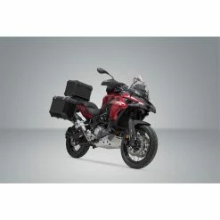 Order, unpack, mount and drive away. The TRAX ION aluminum case system contains everything needed to mount two side cases on your motorcycle: two TRAX ION side cases, two removable SW-MOTECH side carriers, anti-theft protection, matching locks, adapter kit and accessories. The bike-specific carriers and the size of the cases are perfectly matched to the rear shape and exhaust system of the motorcycle.