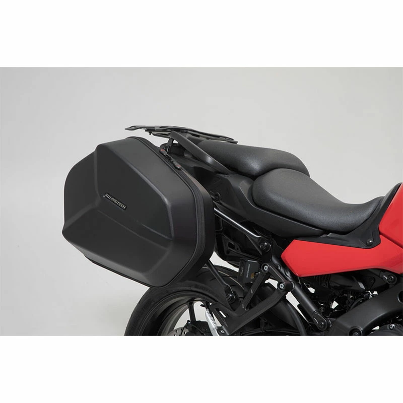 The AERO ABS side case system consists of the matching PRO side carriers for the Yamaha Tracer 9 and two plastic cases.