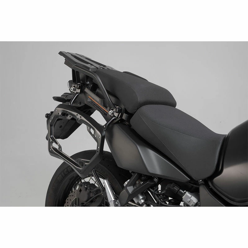 The side carriers are extremely durable and designed to fit closely along the vehicle. SW-MOTECH manufactures these side carriers in robust steel and then finish them off with a black powder coating. The patented QUICK-LOCK system allows the carrier to be attached and removed quickly