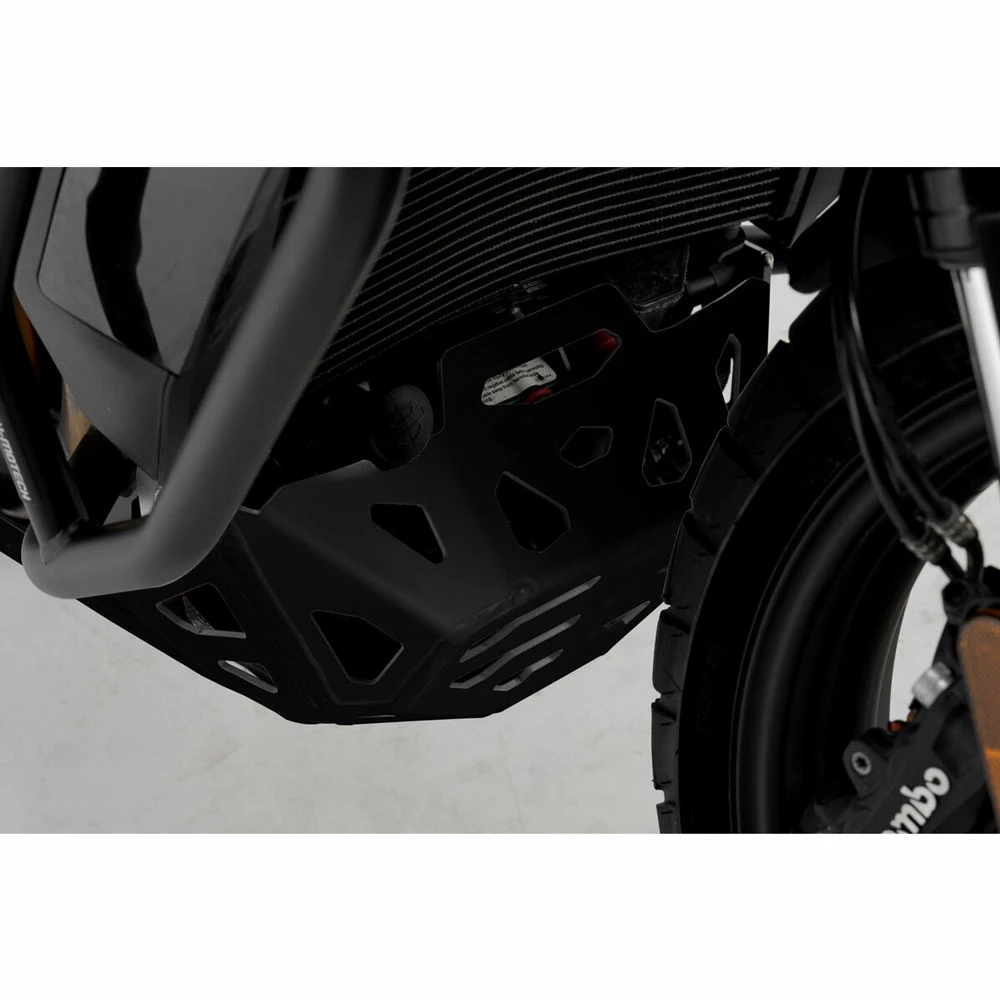 Additional protection against rocks and contact with the ground for the engine: the high-quality, aluminium alloy engine guard shows what it’s capable of off the street, but provides extra safety and an individualized look on the streets, too. State-of-the-art production gives these bike-specific protectors a secure fit without affecting ground clearance. The installation on frame mounting points lends additional stability and allows for easy installation.