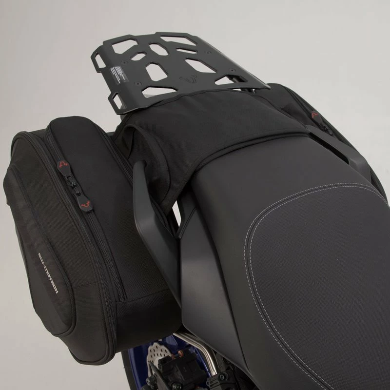 The BLAZE saddlebags with removable support arms impress with their sporty appearance, light weight and smart attachment system. Developed specifically for sporty motorcycles, the saddlebags have a minimal effect on driving characteristics. When travelling without luggage, the removable support arms can be detached with a simple step, leaving only inconspicuous holders behind on the bike. The bike-specific developed removable support arms, a powerful hook and loop fastener and an additional safety belt with click fastener ensure the best grip and prevent the bags from swinging or flapping