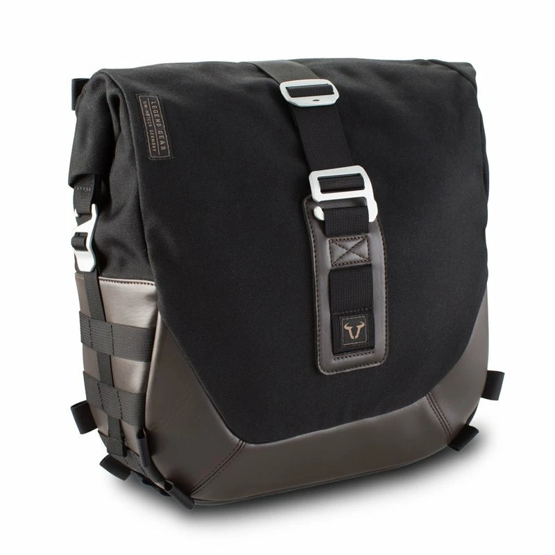 Handles and fitting straps with brushed aluminium hooks provides the Legend Gear saddle bag LS1 with secure and flexible attachment to the Legend Gear SLS saddle strap