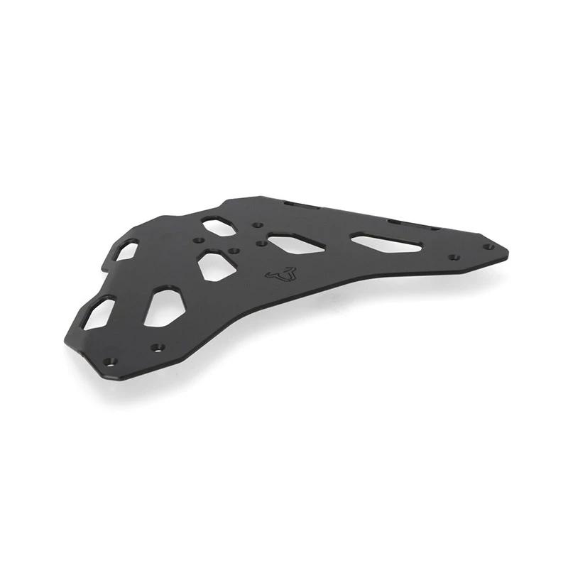 Separately available adapter plate can be securely attached to the luggage rack without tools