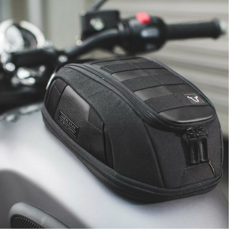 The Legend Gear tank bag is ideal for classic motorcycles such as the Scrambler and Café Racer. This SW-MOTECH tank bag is made from napalon synthetic leather and waxed canvas with splashproof inner lining. The waterproof rain cover with clear PVC window provides additional weather protection. Thanks to the sturdy carrying handle, the tank bag can be easily transported.