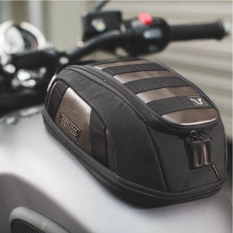 The Legend Gear tank bag is ideal for classic motorcycles such as the Scrambler and Café Racer. This SW-MOTECH tank bag is made from napalon synthetic leather and waxed canvas with splashproof inner lining. The waterproof rain cover with clear PVC window provides additional weather protection. Thanks to the sturdy carrying handle, the tank bag can be easily transported.