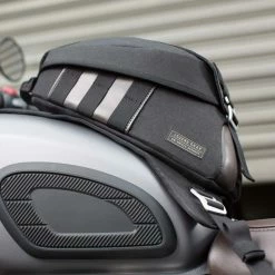 The compact LT2 tank bag uses classic mounting straps with a modern feature: Two aluminium hooks make it easy to lift the bag and access the gas tank. The Legend Gear tank bag is ideal for classic motorcycles such as the Scrambler and Café Racer. This SW-MOTECH tank bag is made from napalon synthetic leather and waxed canvas with splashproof inner lining. The waterproof rain cover with clear PVC window provides additional weather protection. Thanks to the sturdy carrying handle, the tank bag can be easily transported.