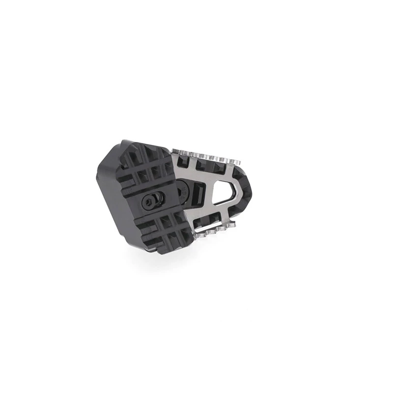 The extension for brake pedal is ideal for off-roading: it enhances the original brake arm tread and guarantees a safe, controlled use of the brake. The extension makes it possible for the contact surface to be both broader and higher. That means the extension for brake pedal offers better safety and better control over the rear brake.